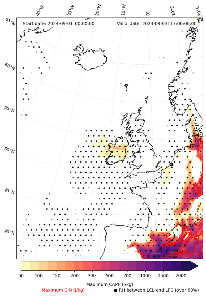 - Maximum CAPE (J/Kg)