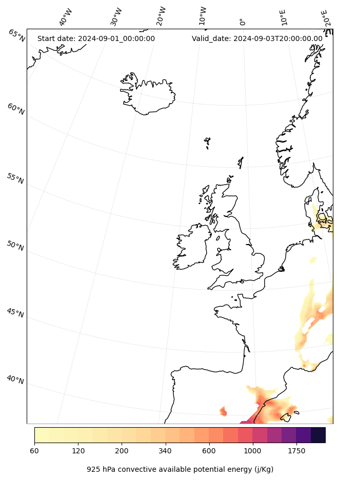 - Maximum CAPE (J/Kg)