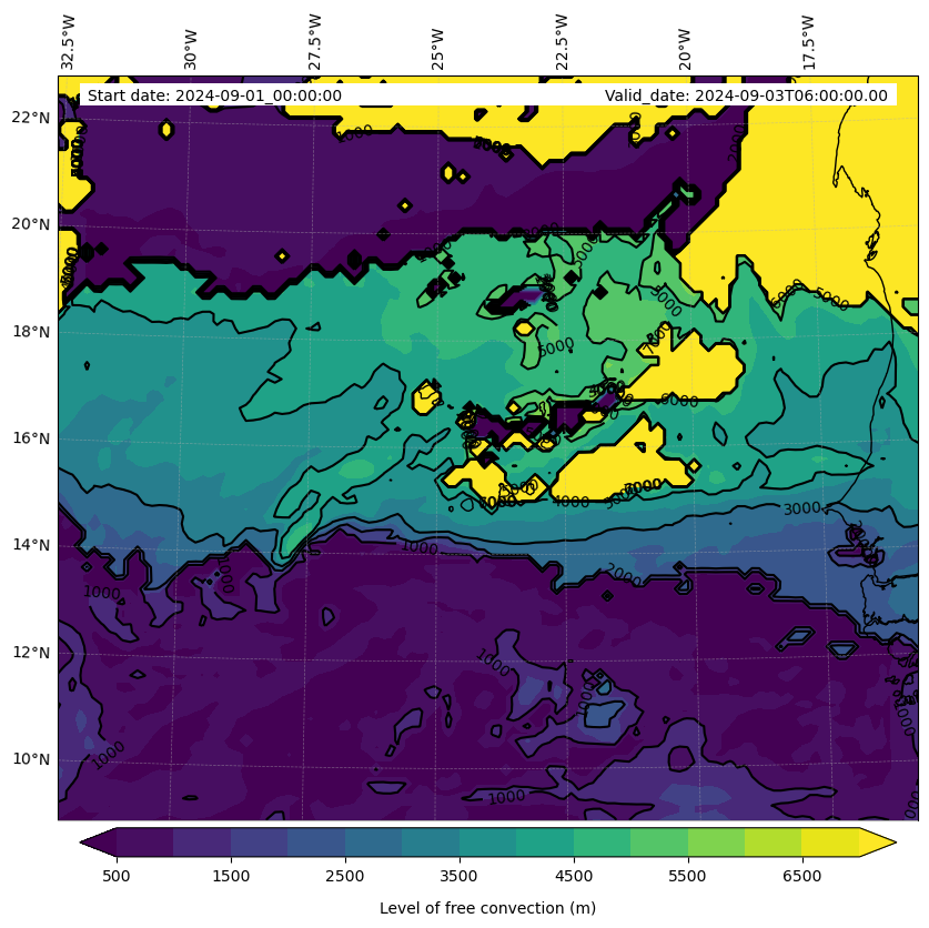 - Level of free convection (m)