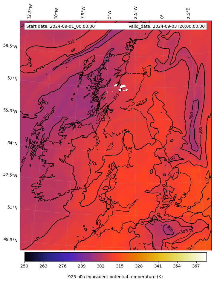 - Equivalent Potential Temperature (K)
