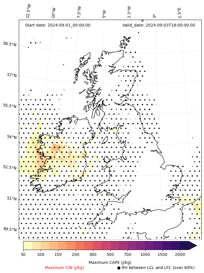 - Maximum CAPE (J/Kg)