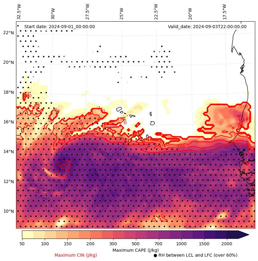 - Maximum CAPE (J/Kg)