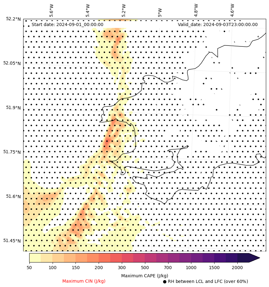 • Maximum CAPE (J/Kg)