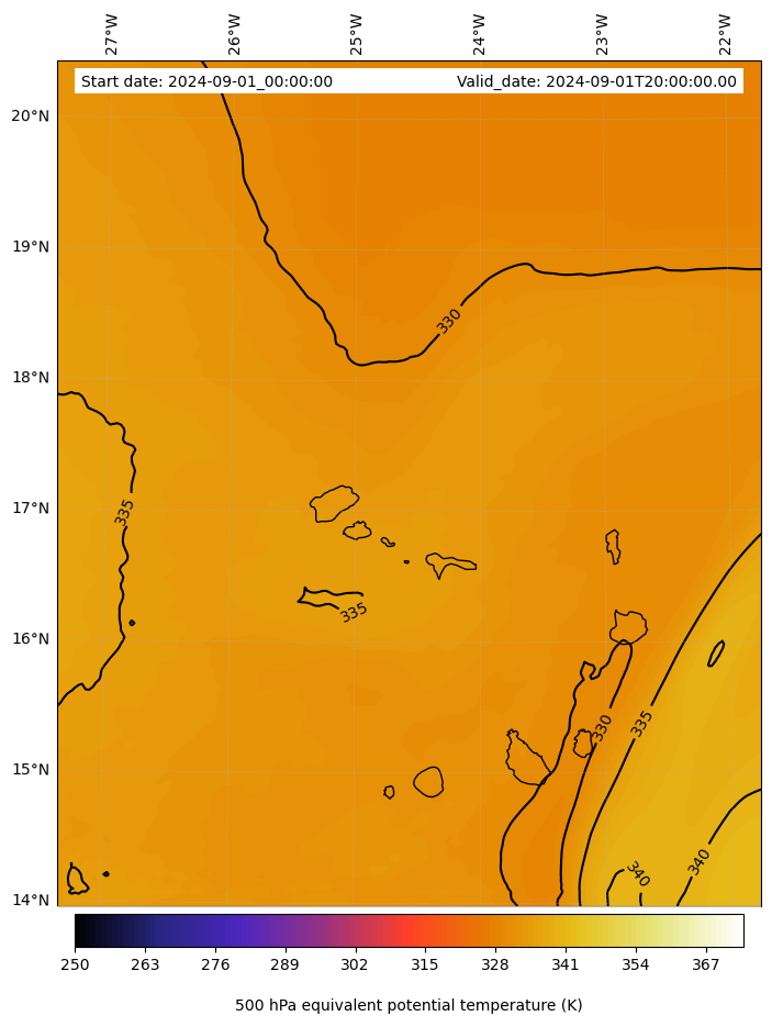 - Equivalent Potential Temperature (K)