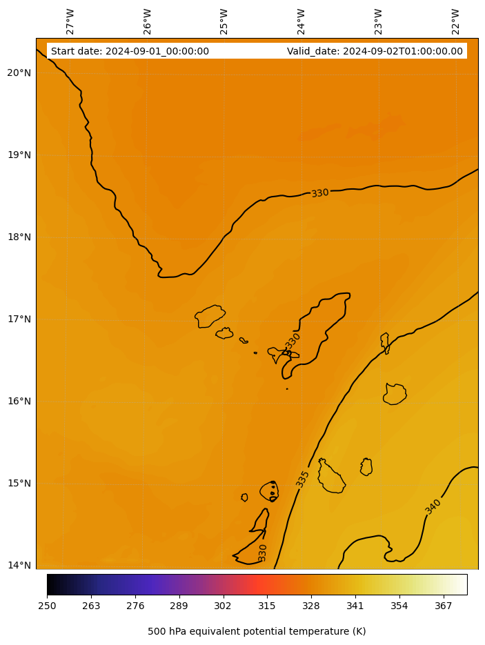 - Equivalent Potential Temperature (K)