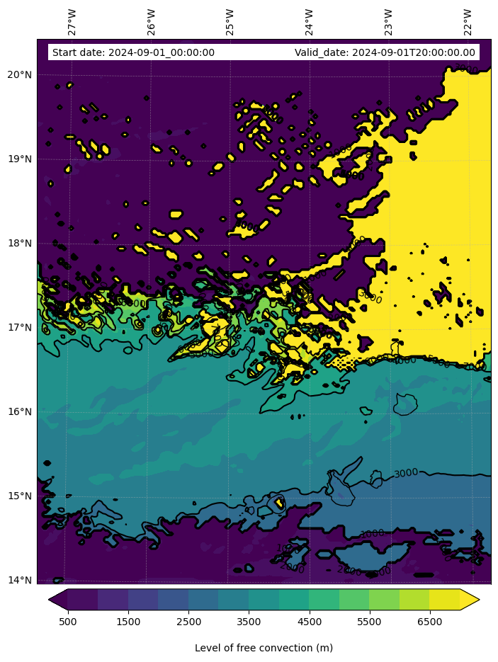 - Level of free convection (m)