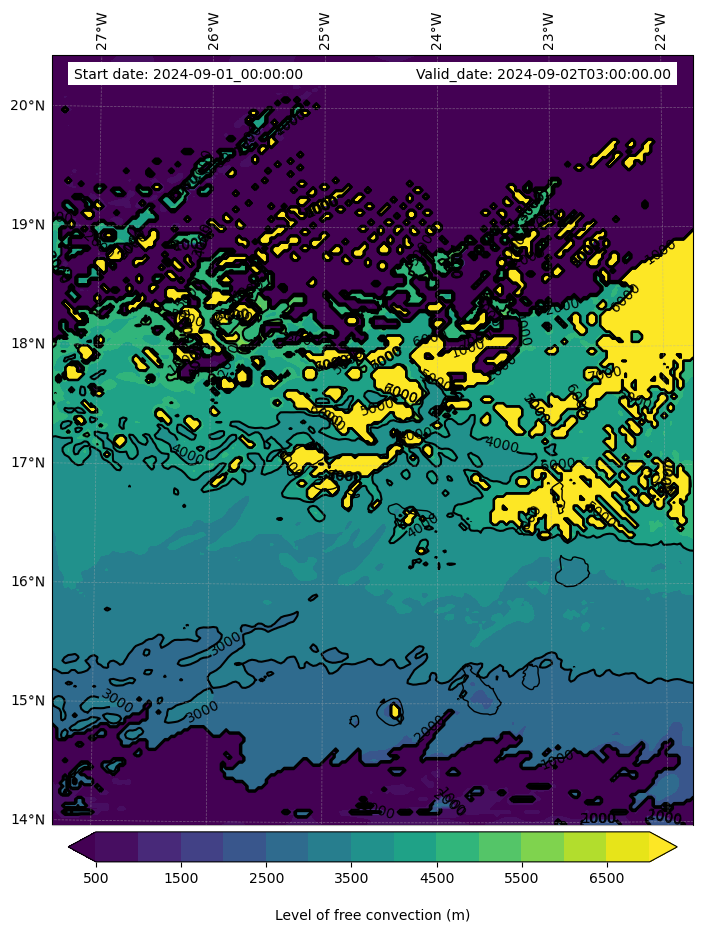 • Level of free convection (m)