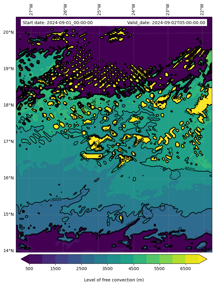 • Level of free convection (m)