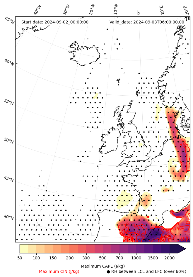 • Maximum CAPE (J/Kg)