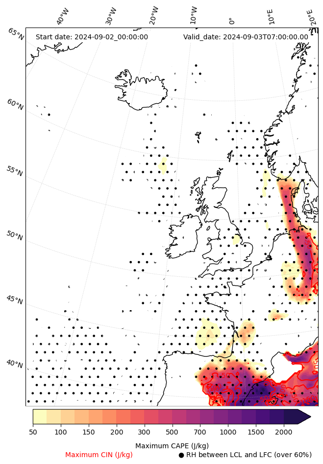 - Maximum CAPE (J/Kg)