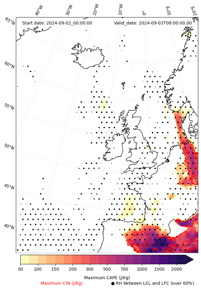- Maximum CAPE (J/Kg)