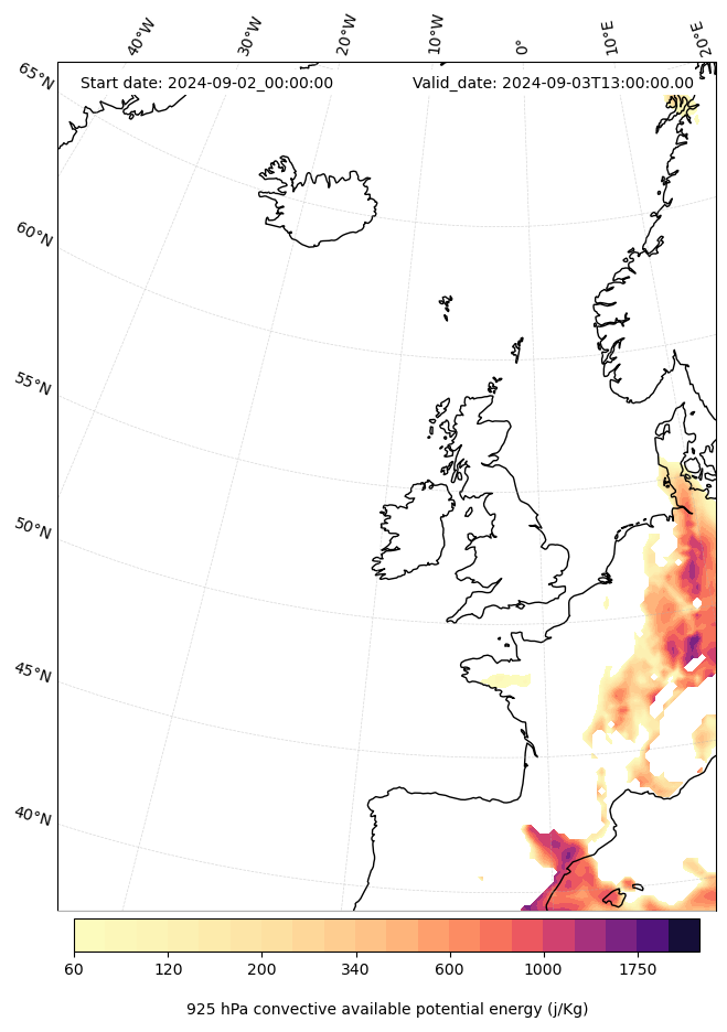 - Maximum CAPE (J/Kg)