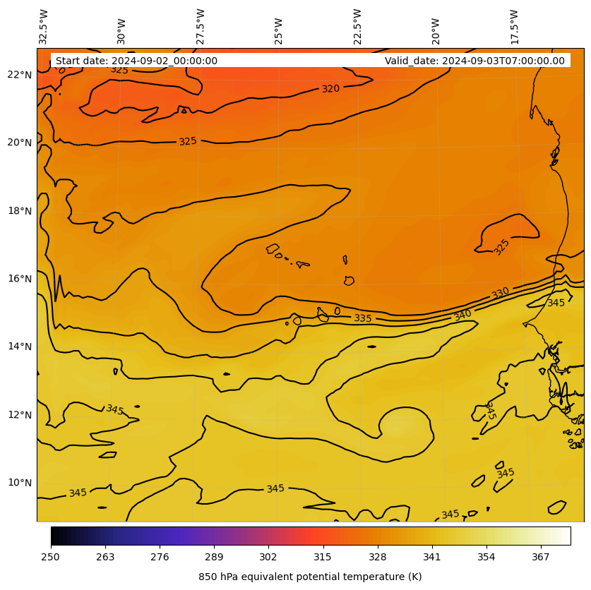 - Equivalent Potential Temperature (K)