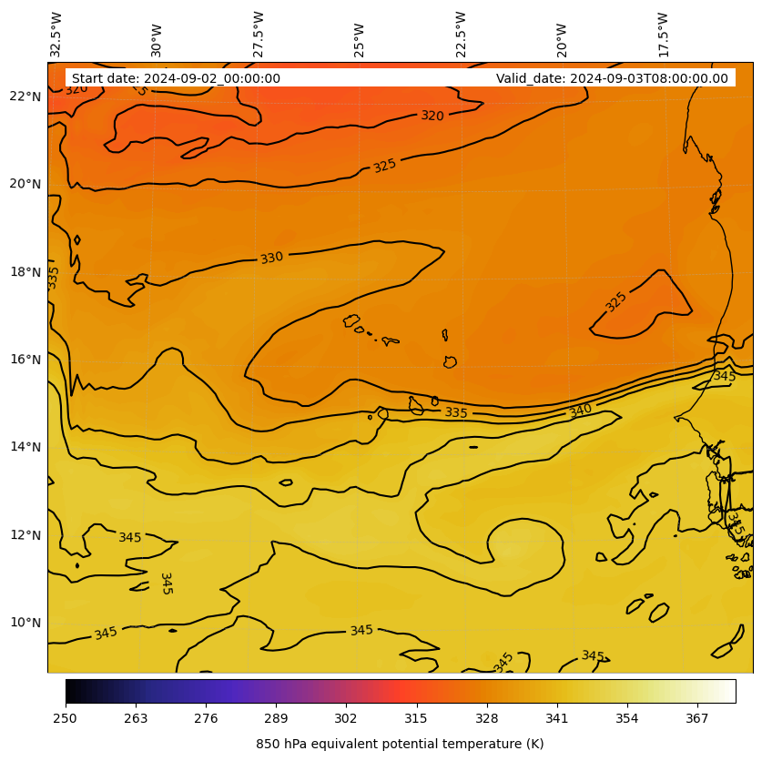 - Equivalent Potential Temperature (K)