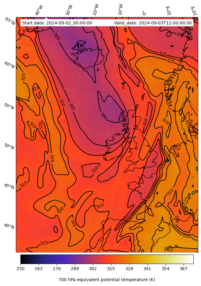 - Equivalent Potential Temperature (K)