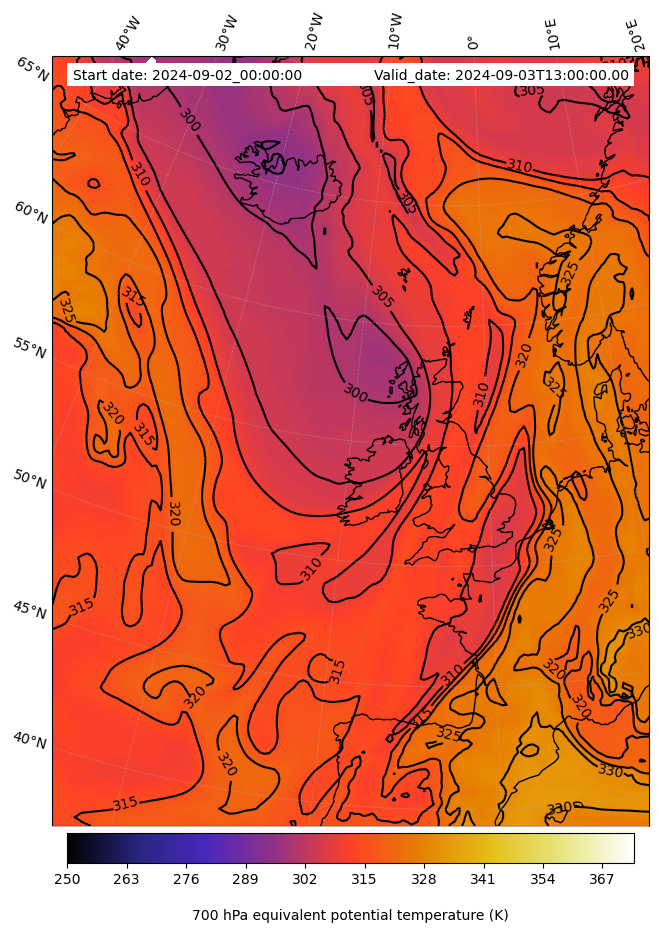 - Equivalent Potential Temperature (K)