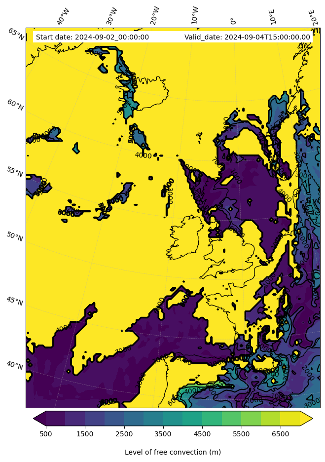 • Level of free convection (m)