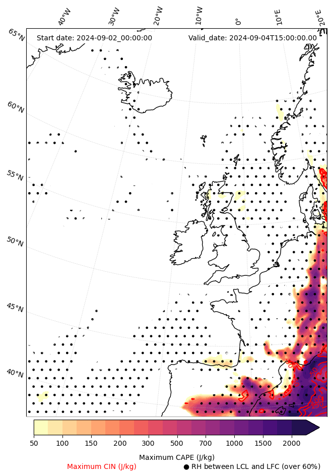 - Maximum CAPE (J/Kg)