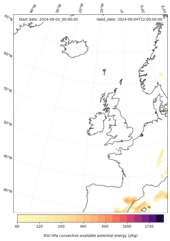 - Maximum CAPE (J/Kg)