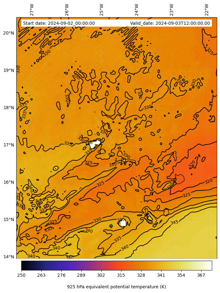 - Equivalent Potential Temperature (K)