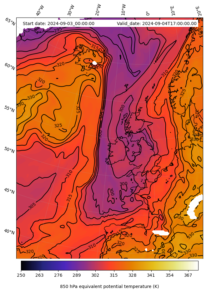 - Equivalent Potential Temperature (K)