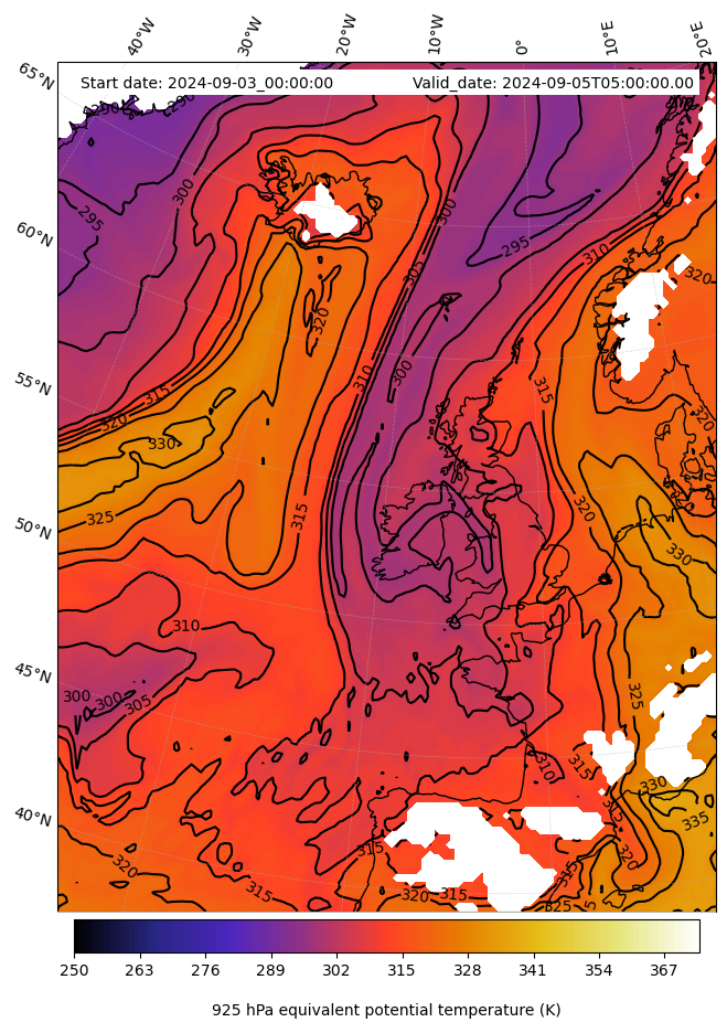 - Equivalent Potential Temperature (K)