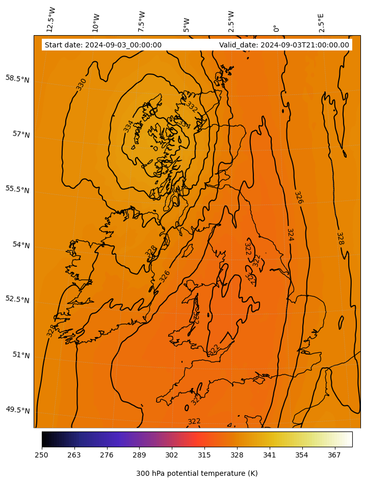 - Equivalent Potential Temperature (K)- 300 hPa