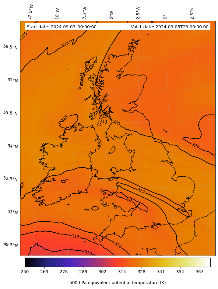 - Equivalent Potential Temperature (K)