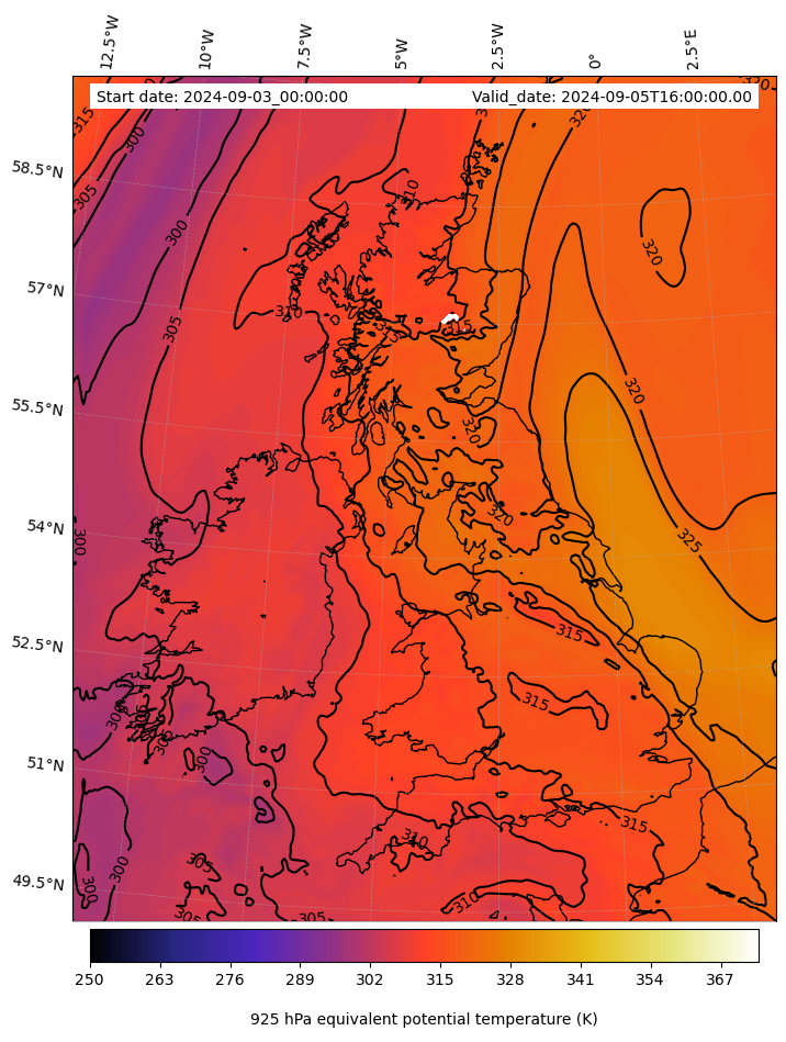 - Equivalent Potential Temperature (K)