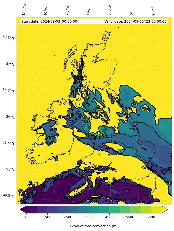 - Level of free convection (m)