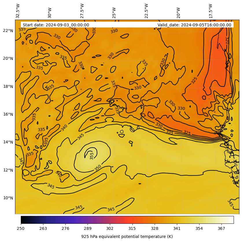 - Equivalent Potential Temperature (K)