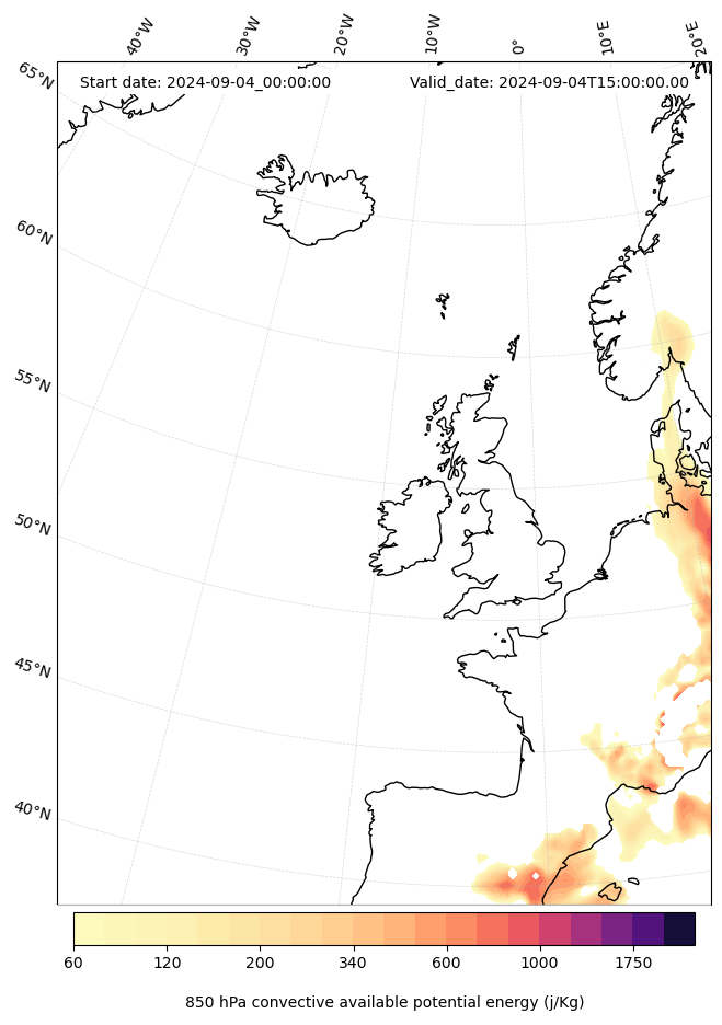 - Maximum CAPE (J/Kg)