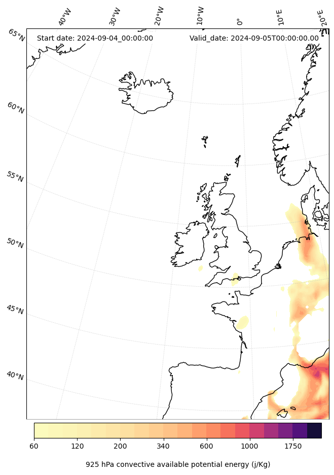 - Maximum CAPE (J/Kg)