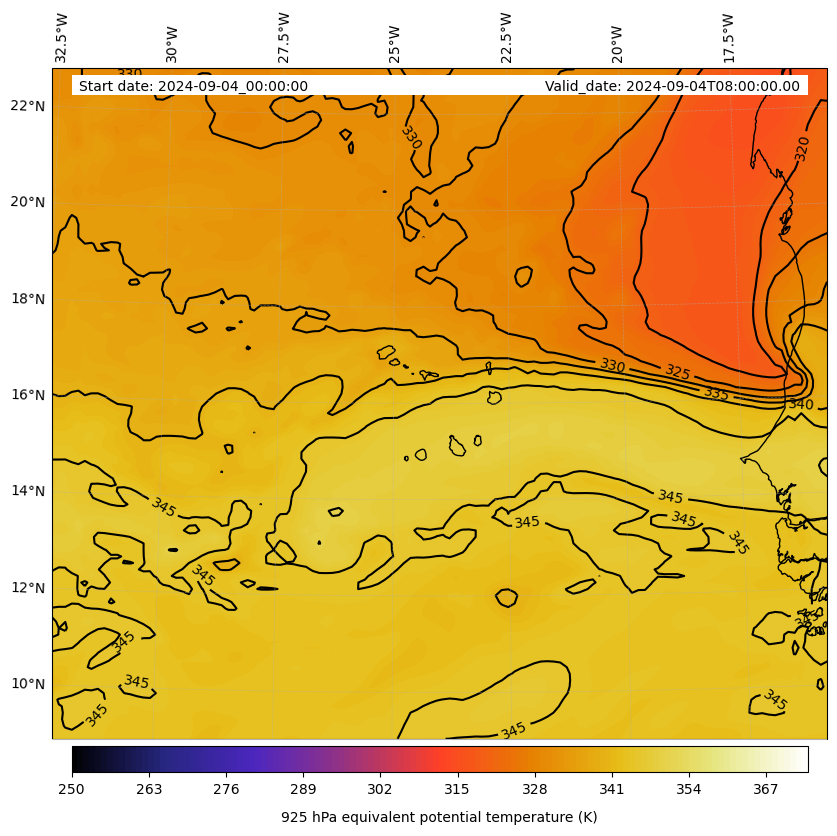 - Equivalent Potential Temperature (K)