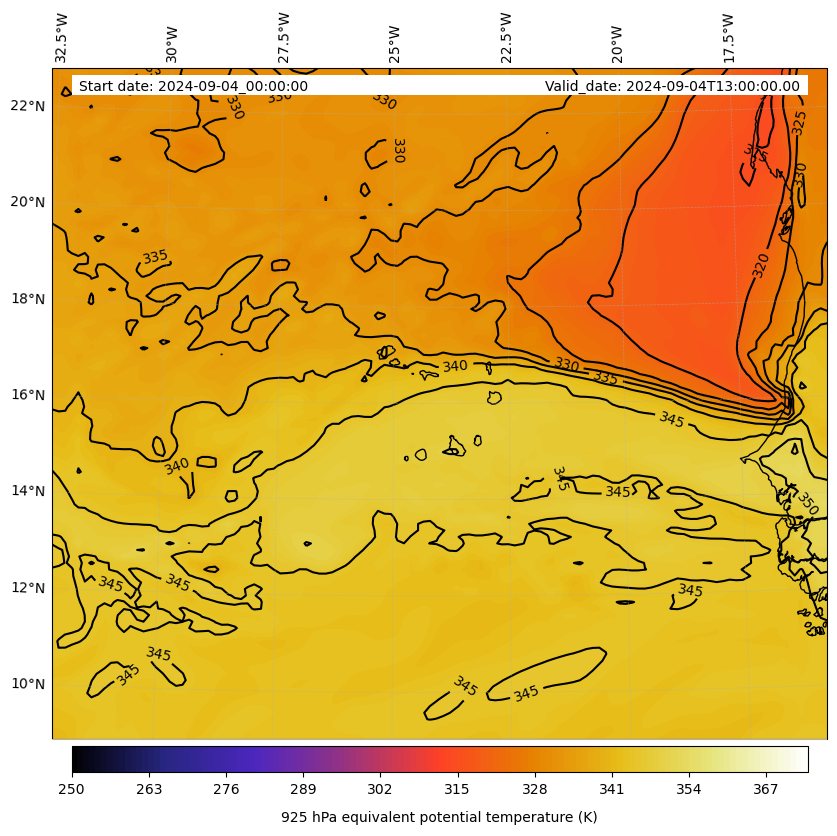 - Equivalent Potential Temperature (K)
