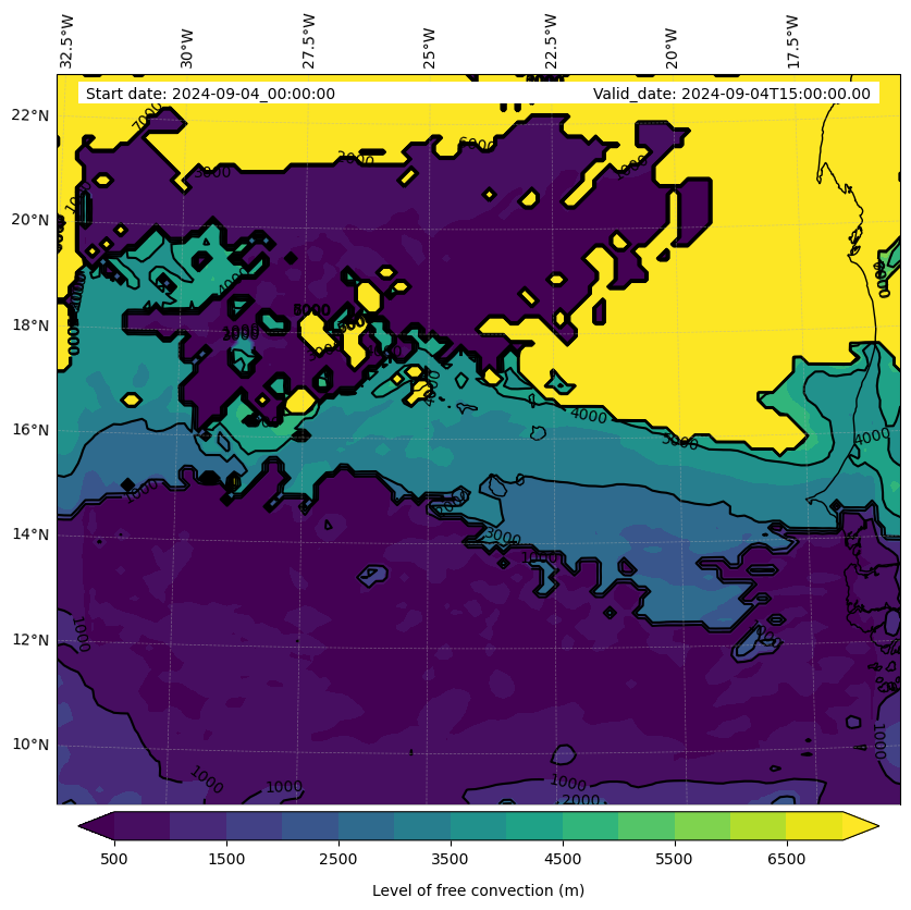 - Level of free convection (m)
