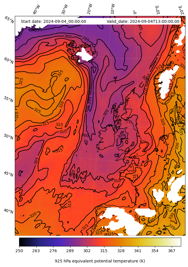 - Equivalent Potential Temperature (K)