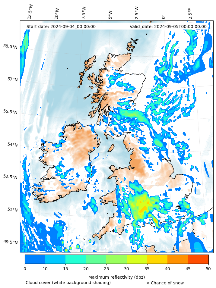 - Snow mixing ratio (g kg¯¹)