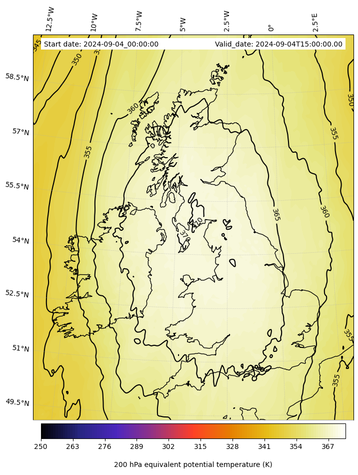 - Equivalent Potential Temperature (K)