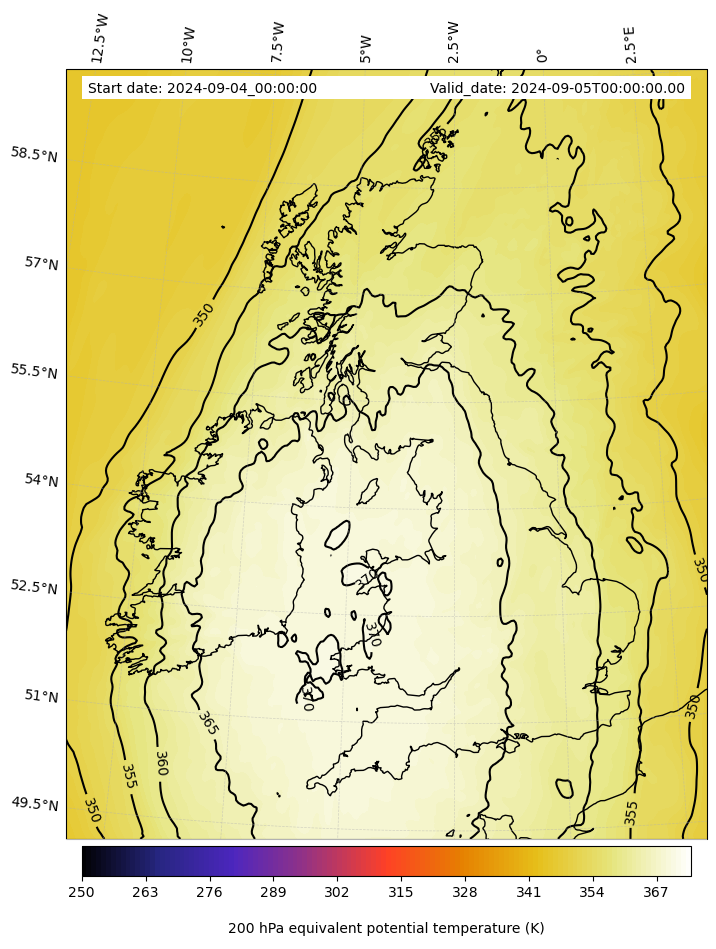 - Equivalent Potential Temperature (K)