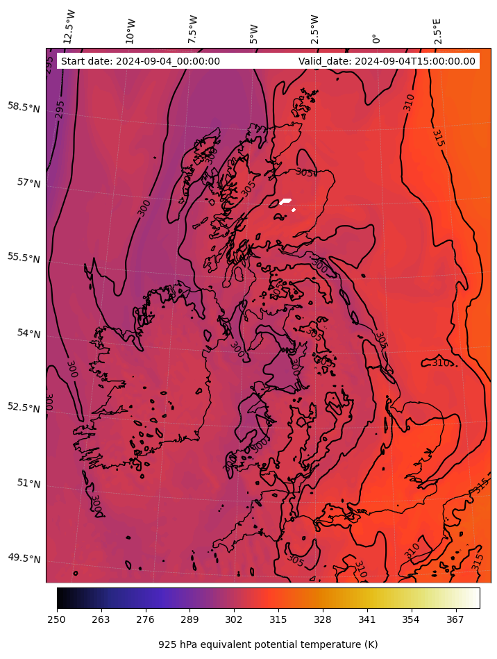 - Equivalent Potential Temperature (K)