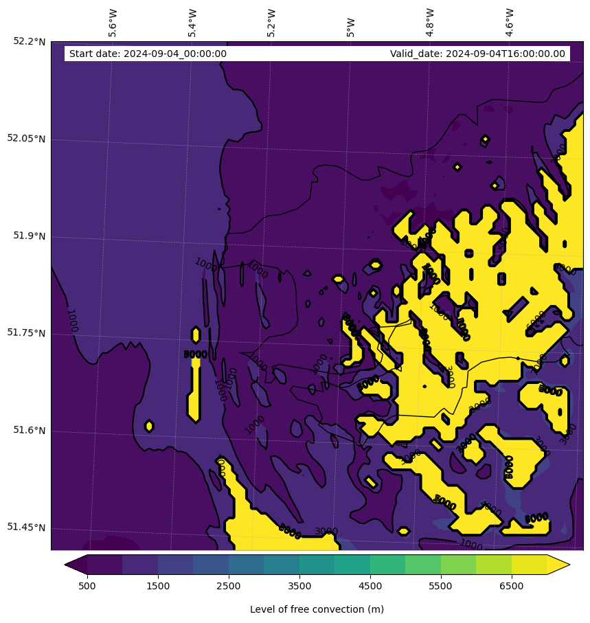 - Level of free convection (m)