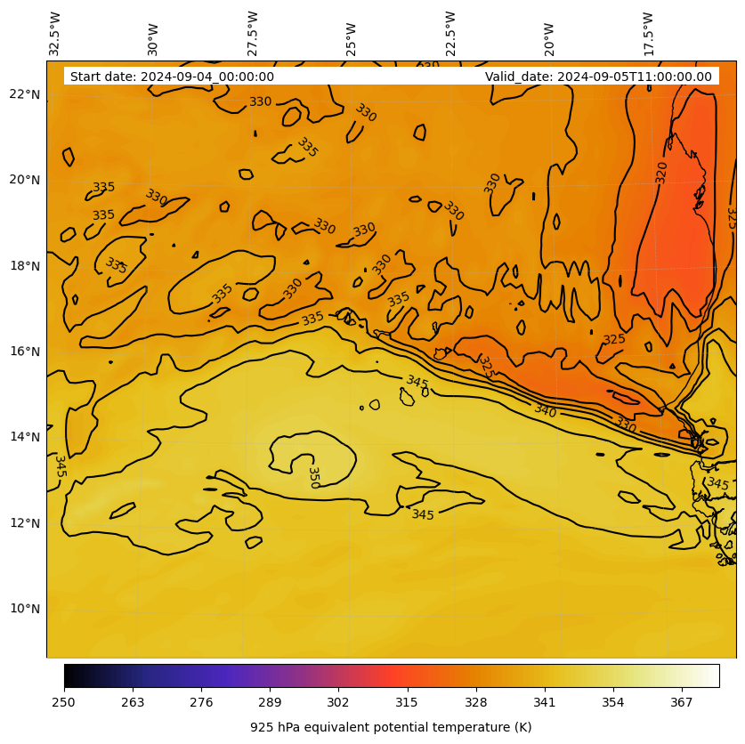 - Equivalent Potential Temperature (K)