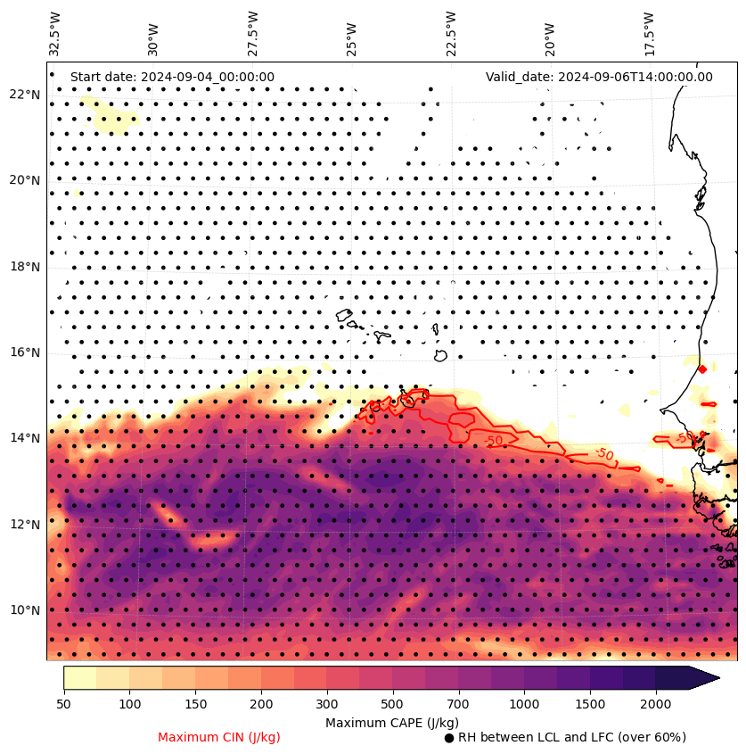 • Maximum CAPE (J/Kg)