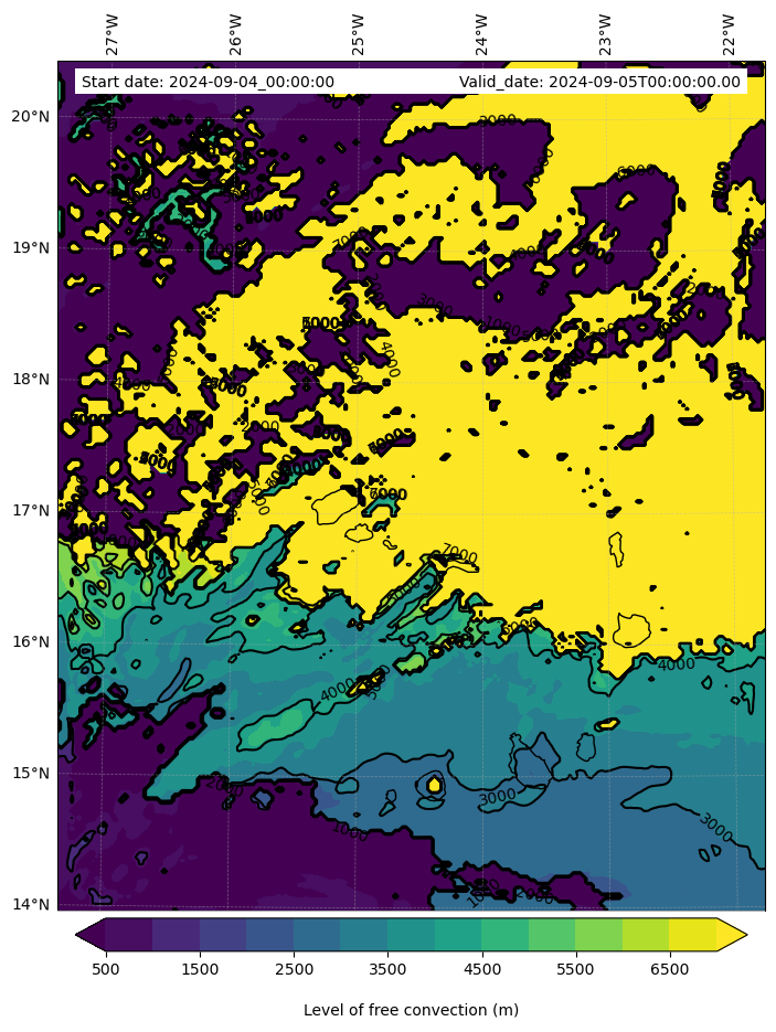 - Level of free convection (m)