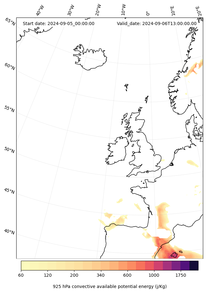 - Maximum CAPE (J/Kg)