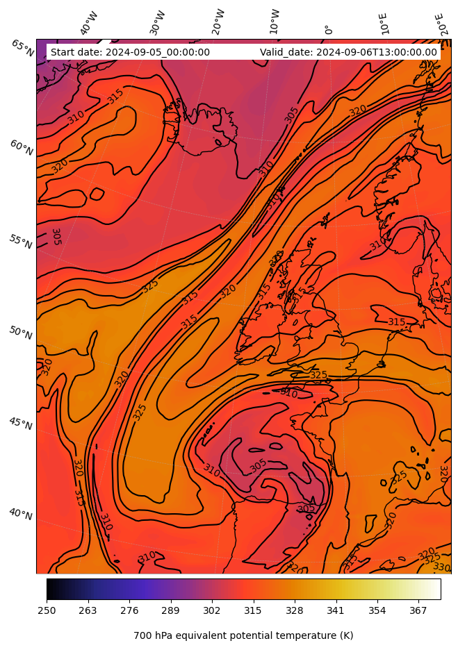 - Equivalent Potential Temperature (K)