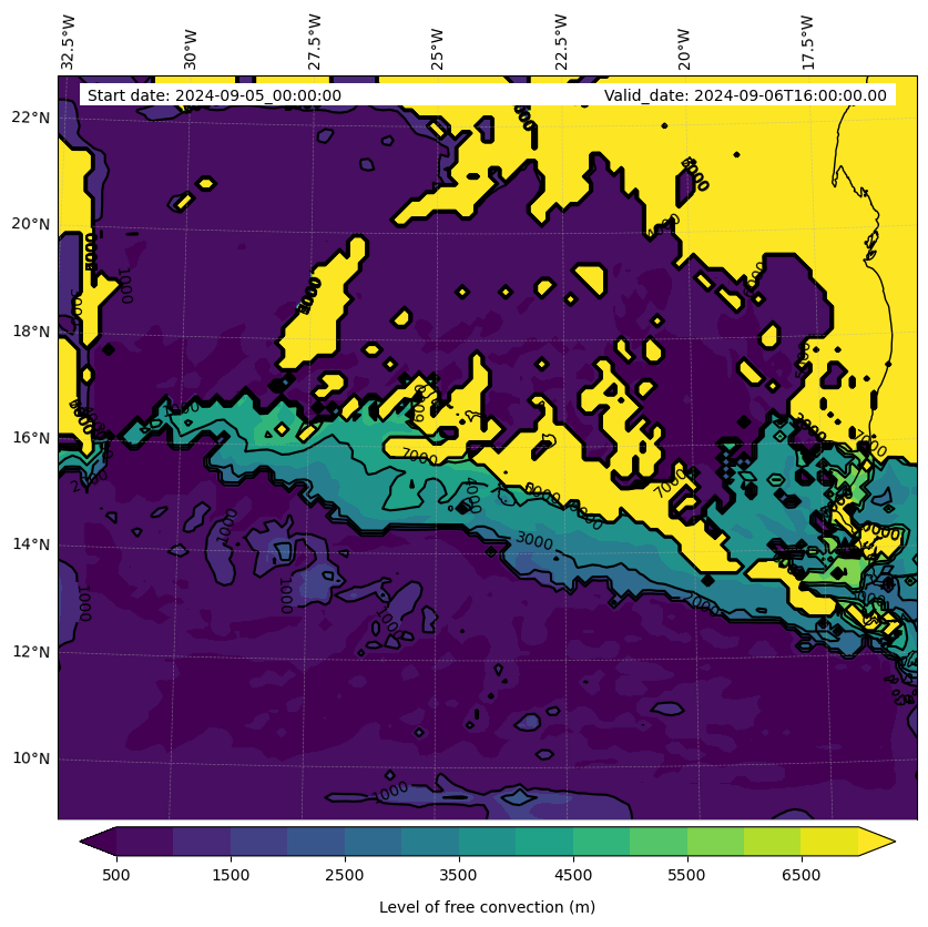 - Level of free convection (m)