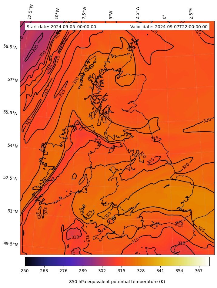 - Equivalent Potential Temperature (K)