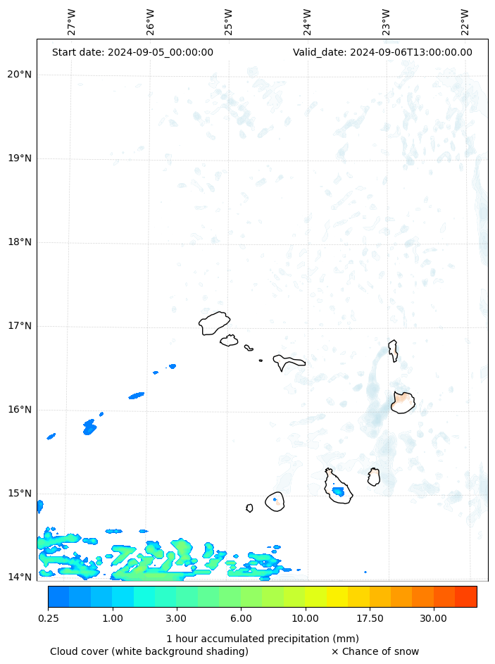 - Snow mixing ratio (g kg¯¹)